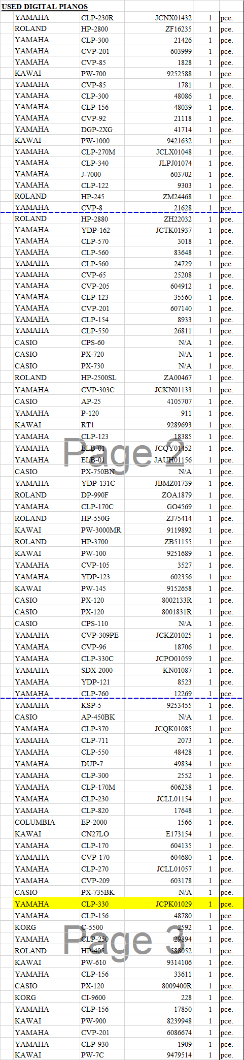 DANH SÁCH PIANO ĐIỆN CONTAINER 91 CÂY SẼ VỀ KHO HOÀNG PHÁT 06/4/2021