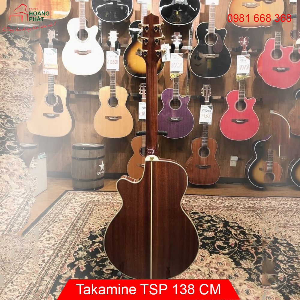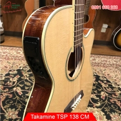 Đàn guitar acoustic 6 dây Takamine TSP138CM (Thineline) với đầu đàn chắc chắn và CT-3N Electronics - Natural Gloss Những cây đàn guitar mỏng mới của Takamine mang lại sự thoải mái và hiệu suất cho người chơi guitar đang tìm kiếm một thân hình mảnh mai hơn, âm thanh không bị gò bó và xuất sắc trên sân khấu. Cây đàn này có phần đầu đàn vững chắc, mặt sau và hai bên bằng nhựa sapele, và cần đàn bằng gỗ gụ mảnh mai được bao phủ bởi cần đàn bằng gỗ hồng sắc. Sự kết hợp tông màu tuyệt vời này được hoàn thành trong lớp sơn bóng tự nhiên. Nó có tính năng điện tử CT-3N mới của Takamine, mang lại giai điệu mạnh mẽ và được kiểm soát cho bất kỳ giai đoạn nào. Nó đi kèm với một vỏ SH100T bán cứng để bảo vệ an toàn, nhẹ cho cây đàn của bạn.